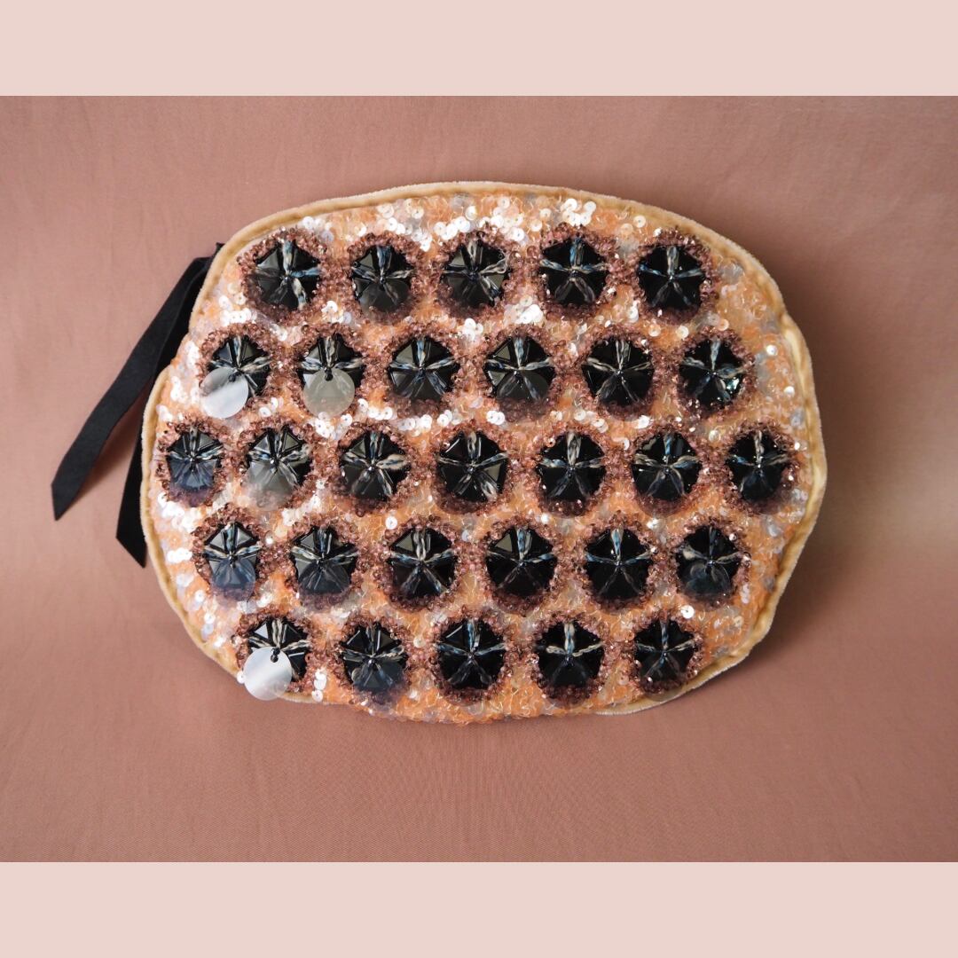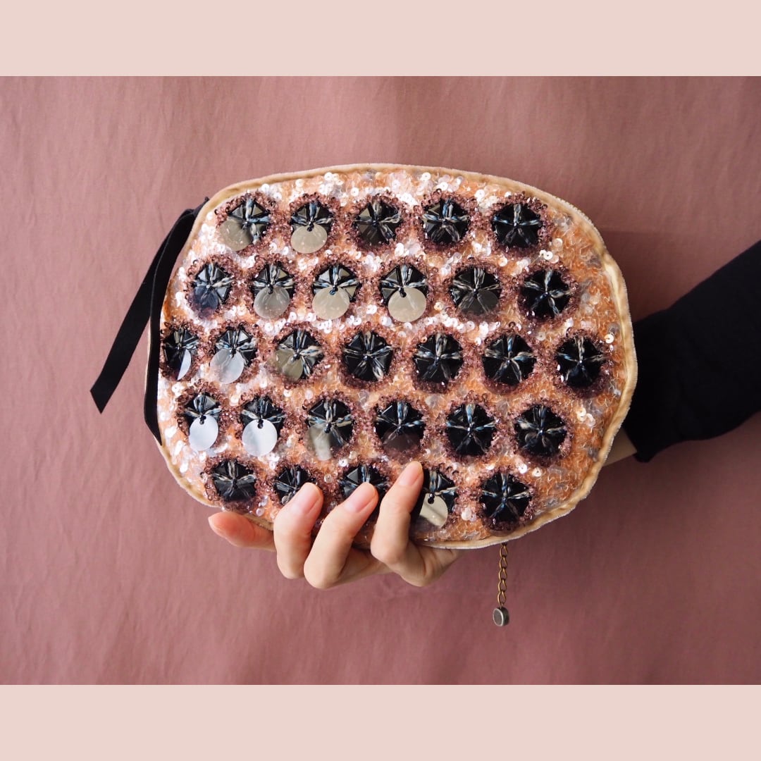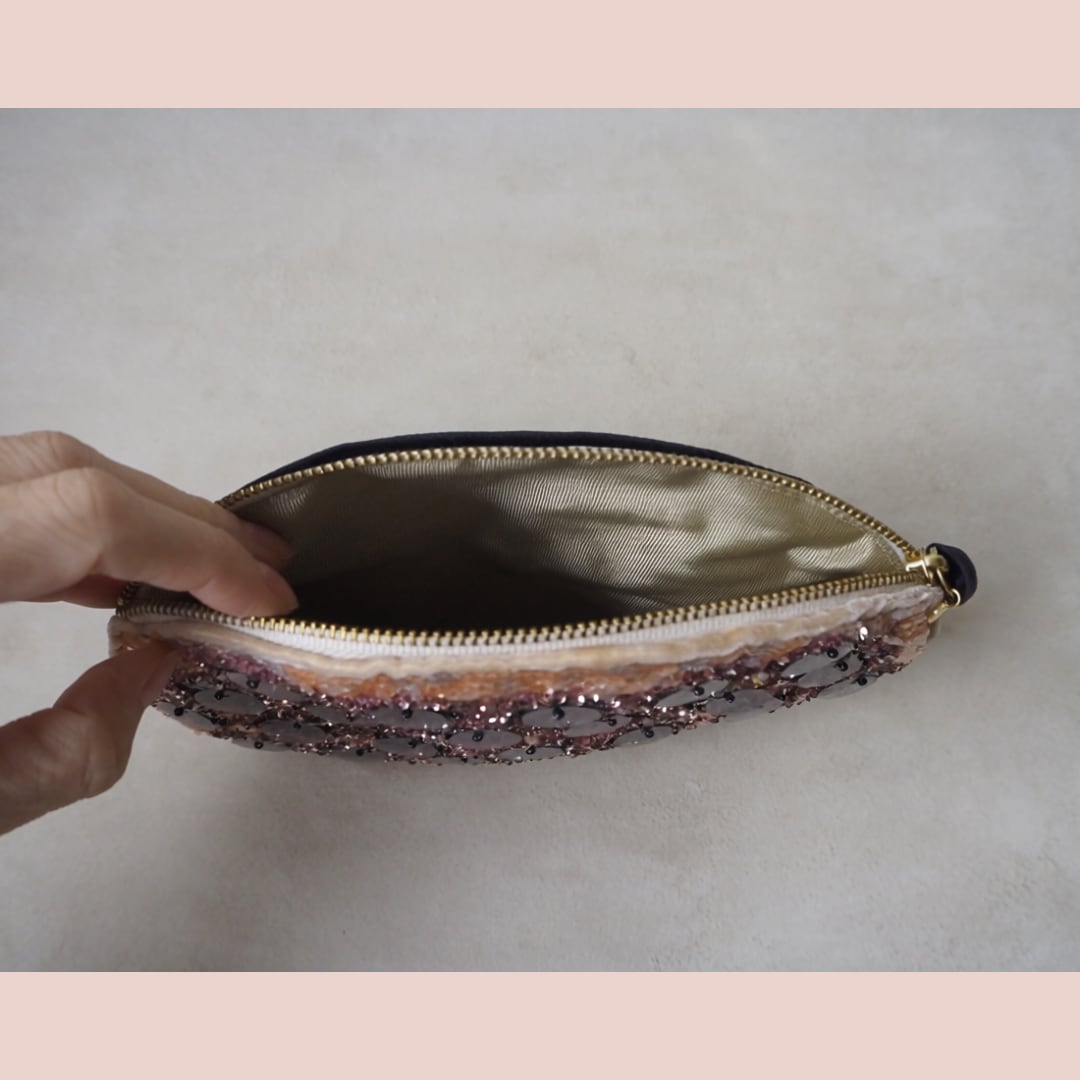 こちらのクラッチはオールドローズ。ピンクをベースにブラックモチーフとの組み合わせが何とも可愛い色合いです。