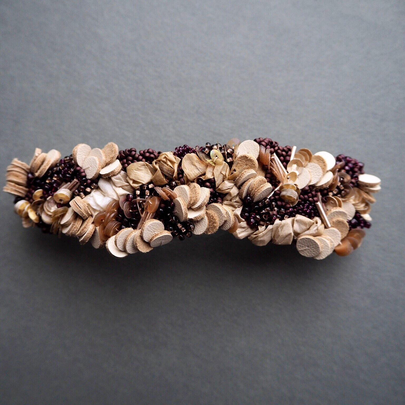 即興的とも言える “ Audace (オダス) ” のデザインは踊りで例えるならコンテンポラリーダンスのよう。自由で非古典的、一つ一つが一点モノのデザインとなったリュネビル刺繍(*)による髪留めです。