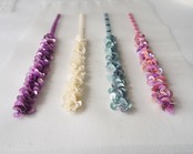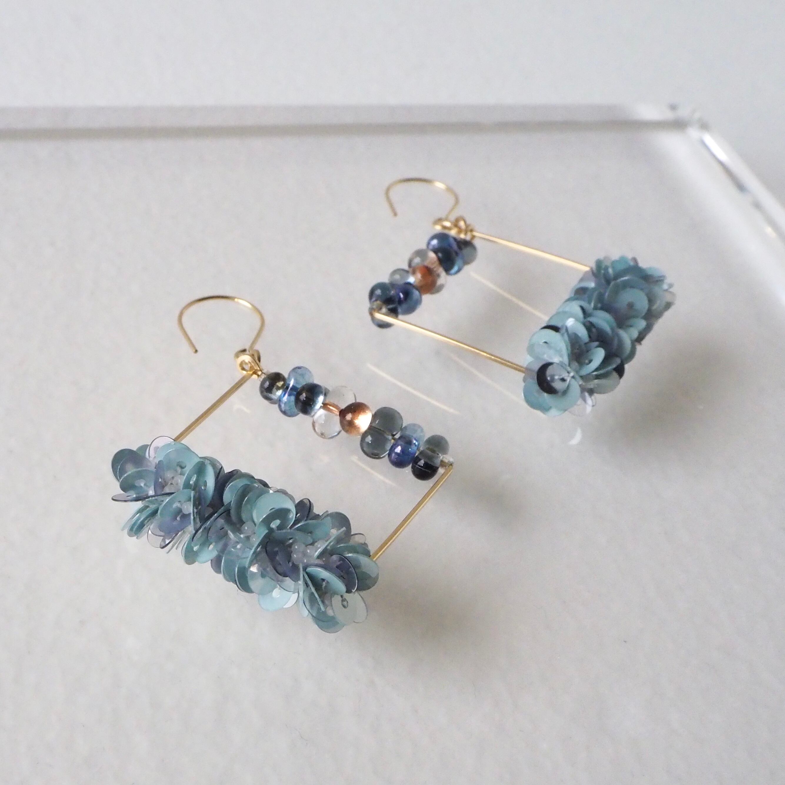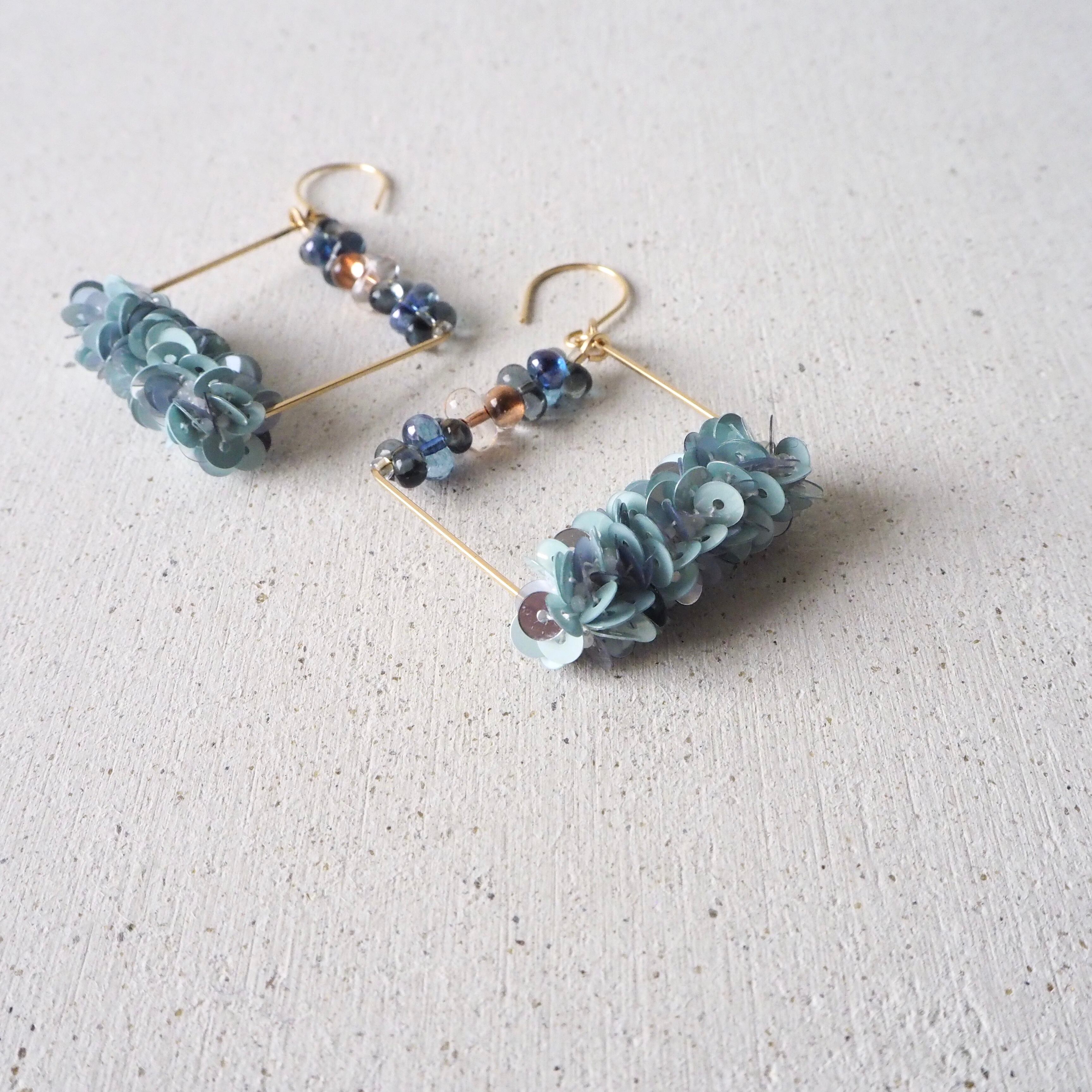 バカンスに向けた開放的なイメージでデザインしました。艶のある美しい色のビーズは透明感溢れる輝きを放ち、スパンコール の煌めきと合わさってコーディネートに華を添えます。